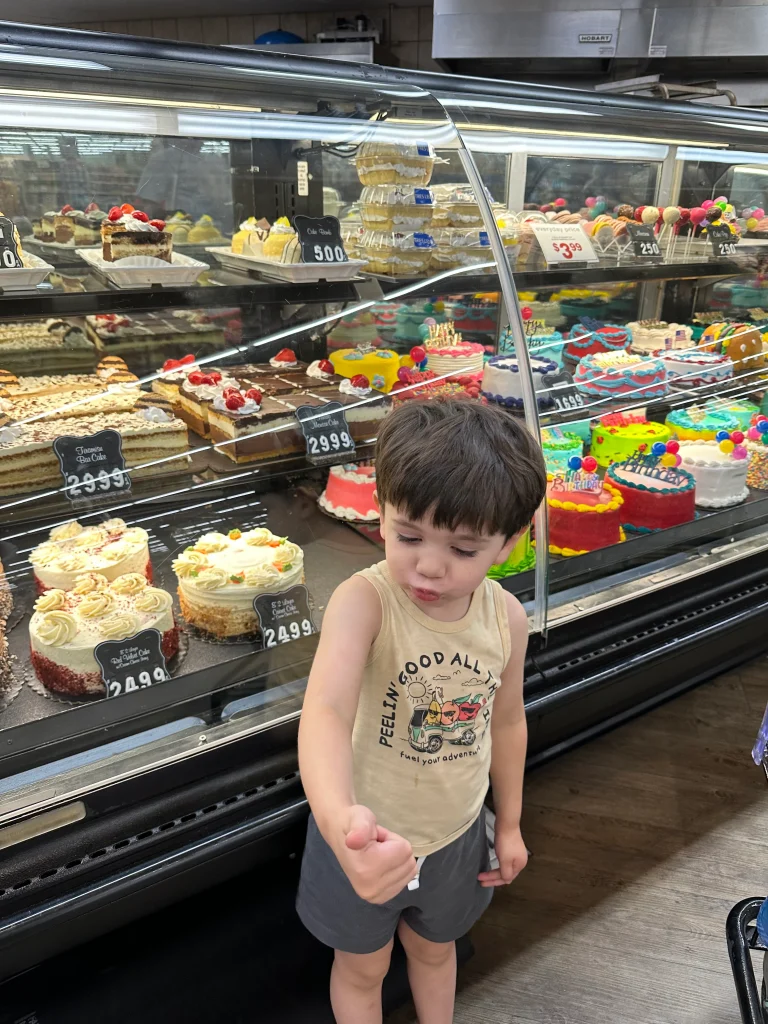 (The picture above is my 3 year old son picking out his birthday cake at a stater bros near us).”