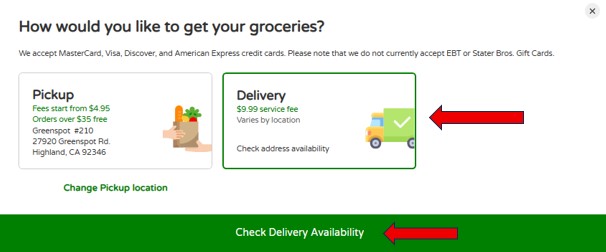 A popup should appear like this where you can select delivery for your address and continue shopping like normal.