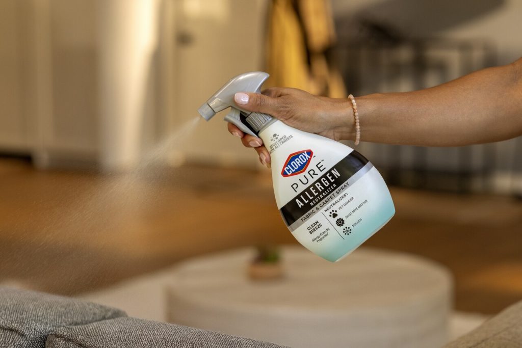 Clorox™ PURE™: A new way to stop allergens before they become allergies. Keep your home free of pesky pet dander, pollen, and dust mite matter. Avoiding allergens is hard, Clorox™ PURE™ is easy! Spraying PURE 1-2 times daily in the air or on your furniture helps take care of any unwanted smells and allergens while keeping your home smelling and feeling fresh.