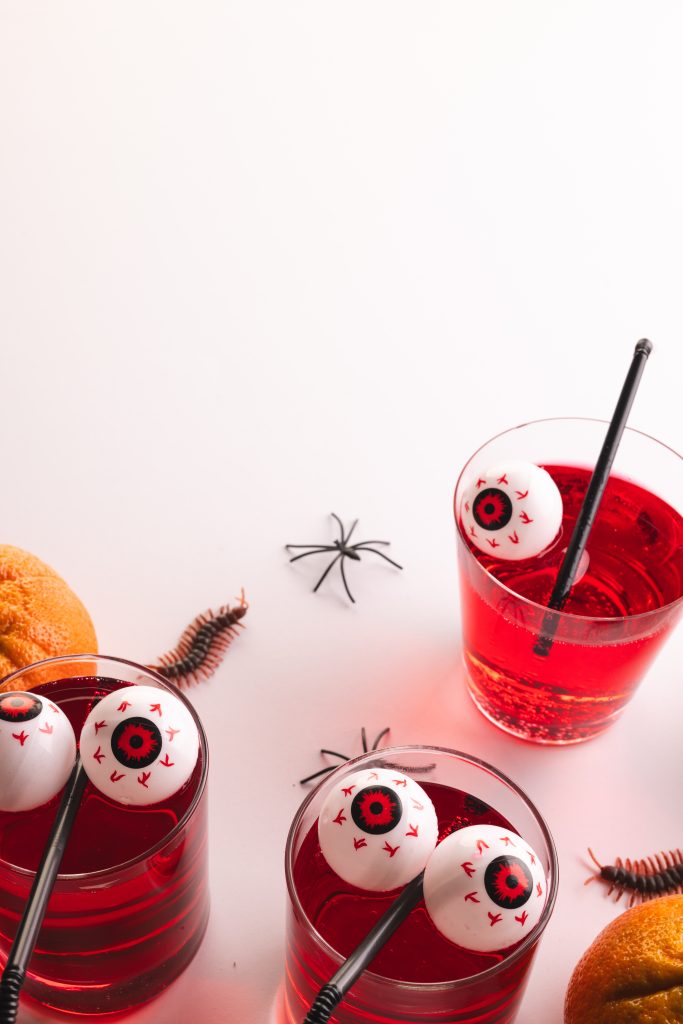 - Spooky garnishes (like floating plastic spiders or eyeball ice cubes)